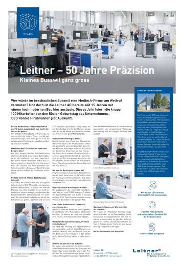 Zum 50. Geburtstag präsentierte sich die Medtech-Firma Leitner AG in der lokalen Presse.