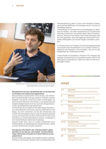 Die Stiftung éducation21 koordiniert und fördert Bildung für Nachhaltige Entwicklungin der Schweiz. Sie wirkt im Auftrag der Konferenz der kantonalen Erziehungsdirektorinnen und -direktoren (EDK), des Bundes und der Zivilgesellschaft als nationales Kompetenzzentrum für die Volksschule und die Sekundarstufe II.